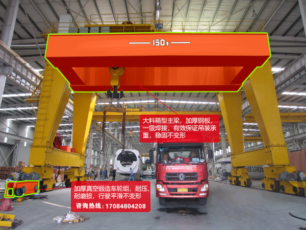 贵州毕节140吨龙门吊公司门式起重机在实际中应用广泛,但如果操作不当的话容易发生安全事故,比如门式起重机在起吊重物的时候常常会发生扭转的现象,完全没有征兆的。但那时候物体已经在半空中进行工作了,不能停止运动,只有等待工作的完成。但是看着这么重的物体在空中进行旋转运动,还是危险的,随时会有掉下的可能。发生类似的事件用户往往以为是钢丝绳的质量问题,才不能够进行正常的工作。但其实无论是哪种型号、哪种质量的起重机在产生力的时候都会发生扭转的情况。但吊钩旋转会影响吊装作业的正常进行,会使作业人员的安全受到严重地威胁。吊钩发生扭转原因有多种: